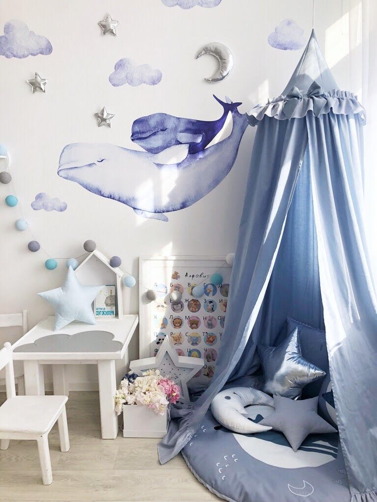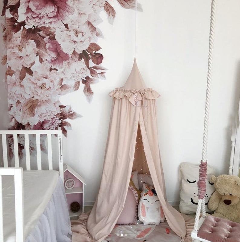 This canopy is unique and universal at the same time. You can use it as a bed canopy for kid or as hanging play canopy in your kid bedroom. It is made from top-quality materials, soft to the touch and light weighted. IT GOES WITH CANOPY HANGER - FULL INSTALLATION SET!