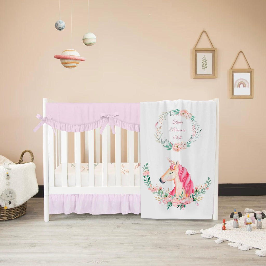 This baby designer nurseryย bedding pink will become a great baby shower gift for girls. Uniัorn baby bedding fits to little prince's nursery and is offered in different options.