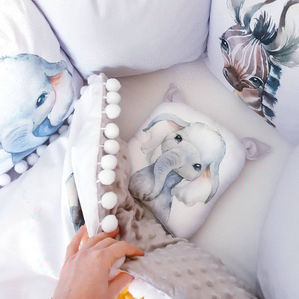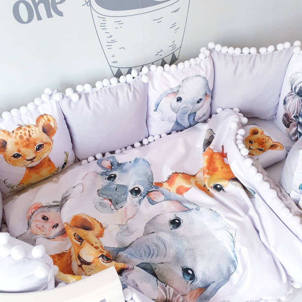 - SET OF 12 pillows for all sides of the crib (size can be customized).