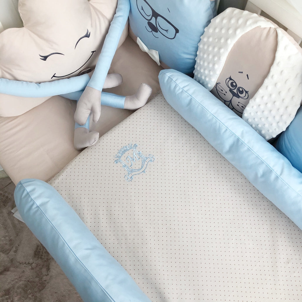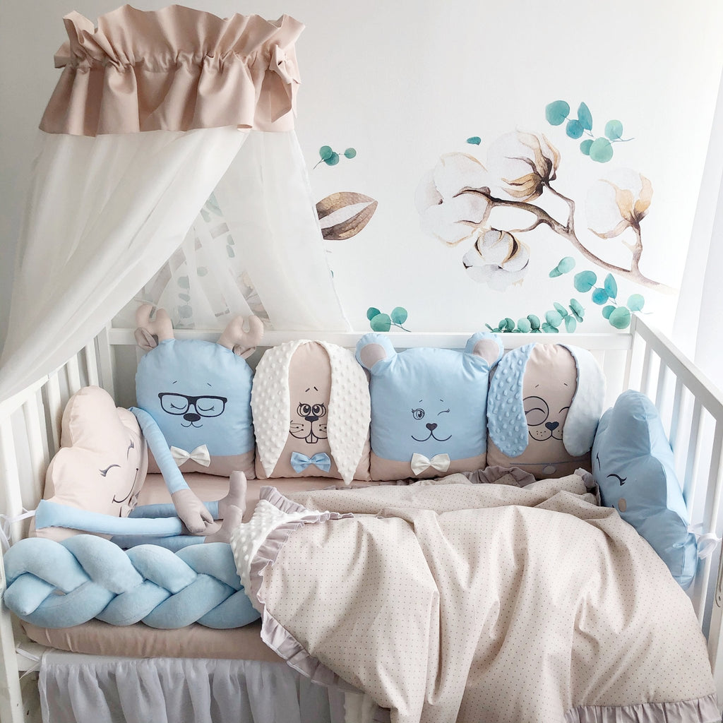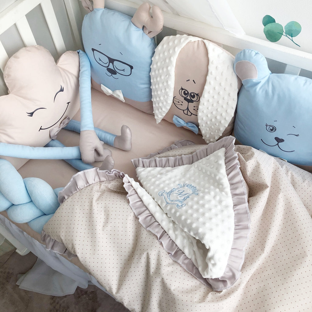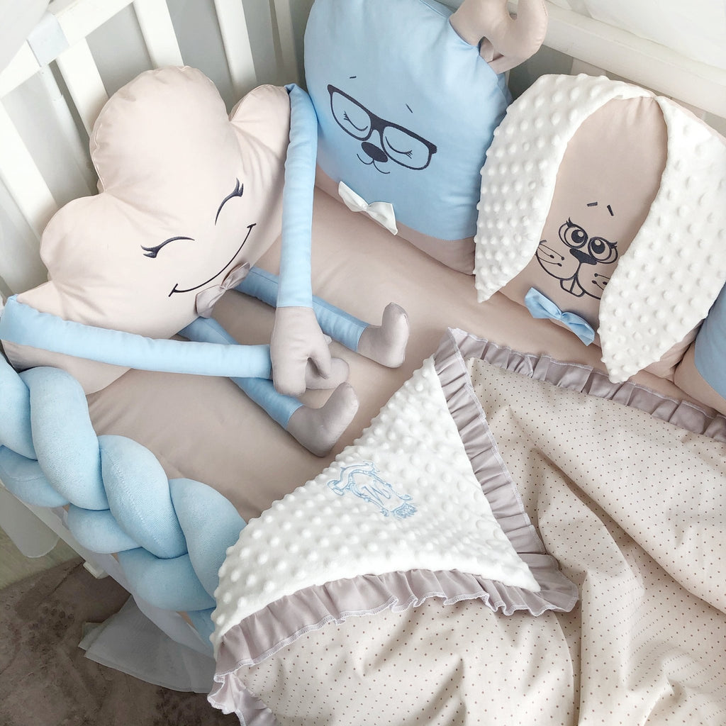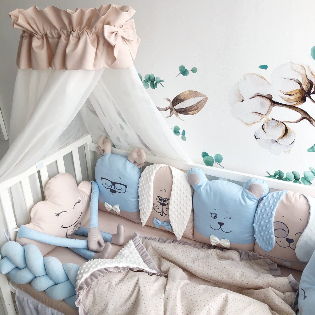 - Crib bumpers: 4 character pillows, 2 cloud pillows