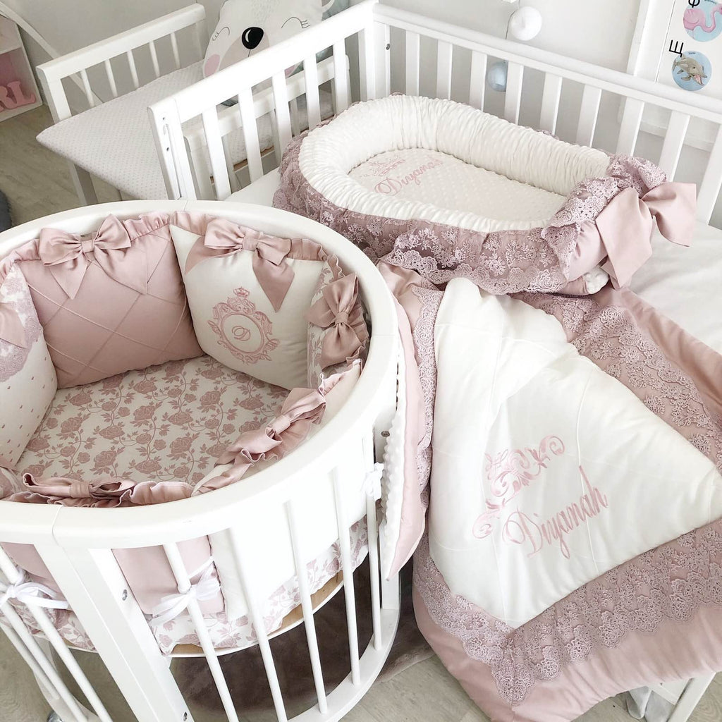 - Baby nest with soft plush and lace + Name embroidery