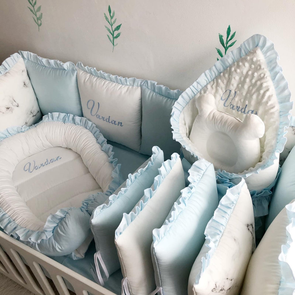 - SET OF 12 pillows for all sides of the crib (size can be customized).