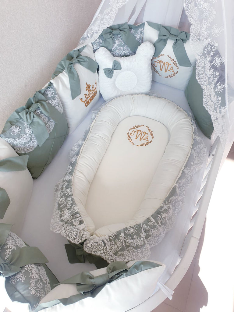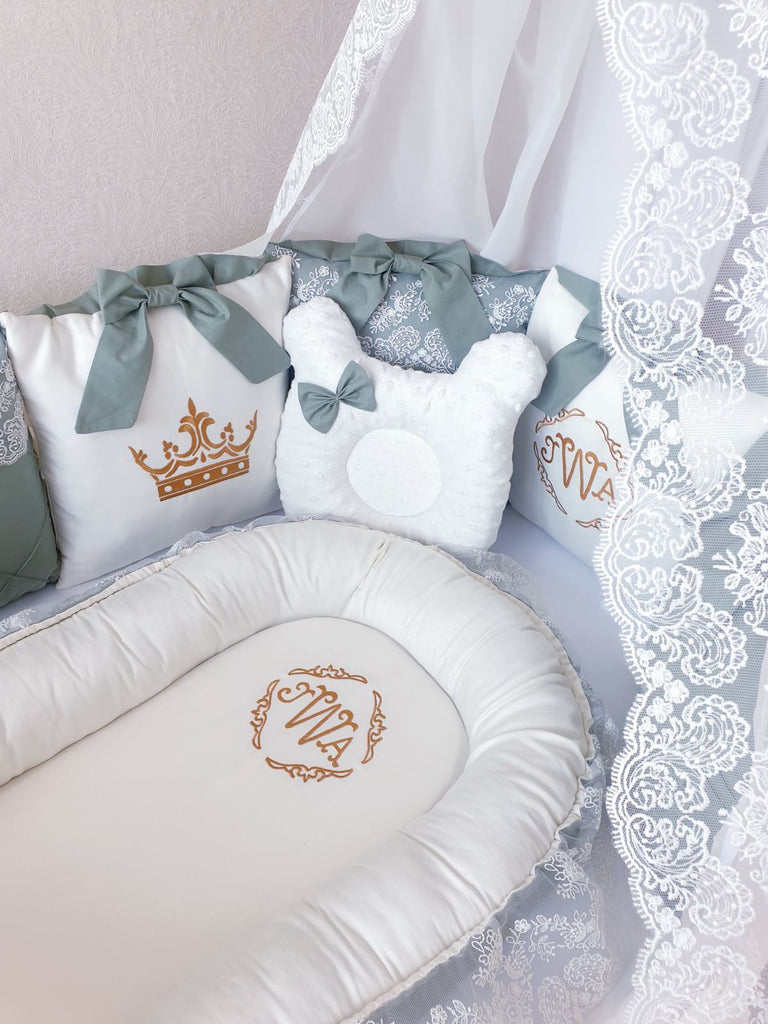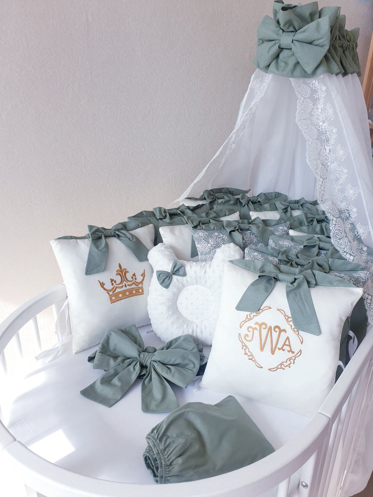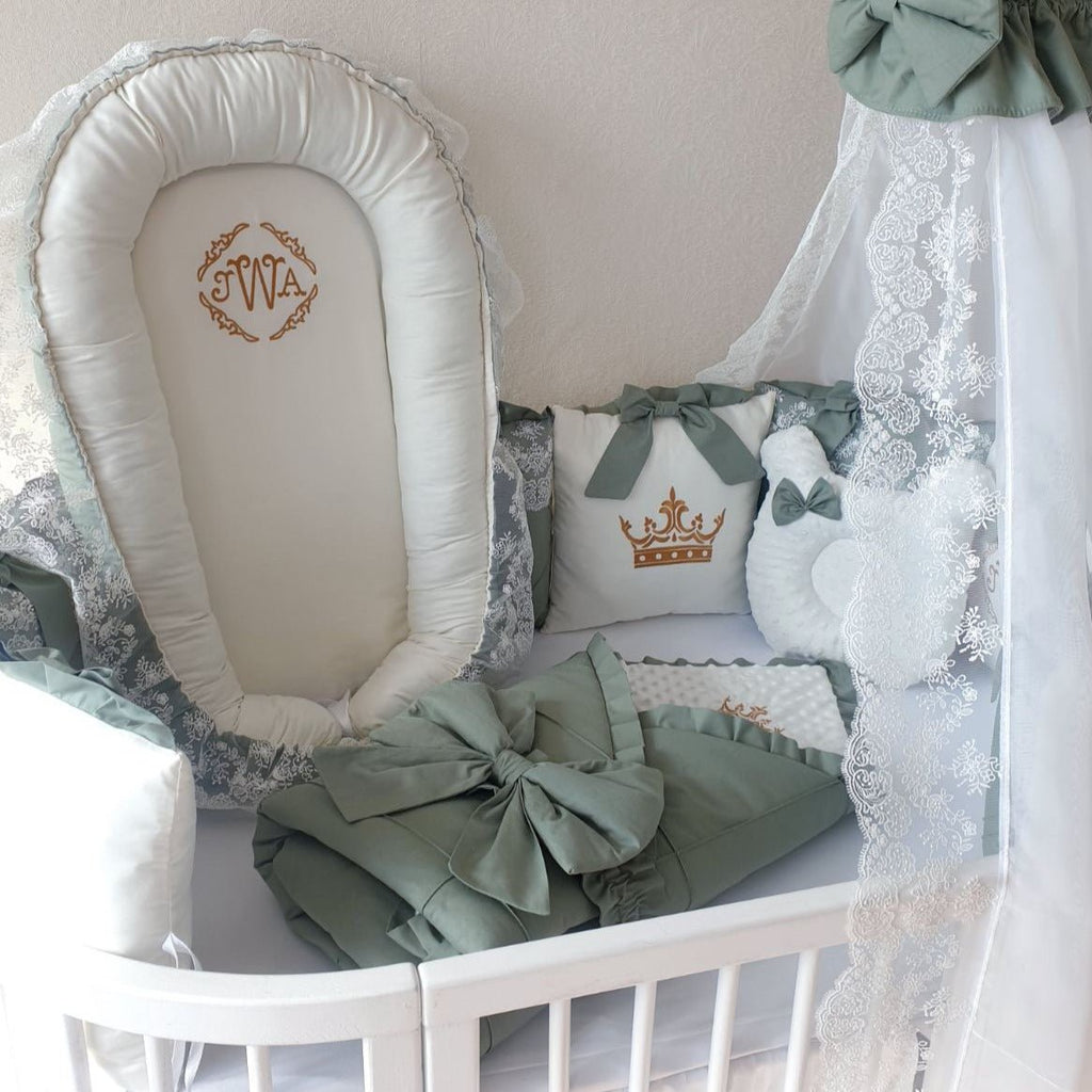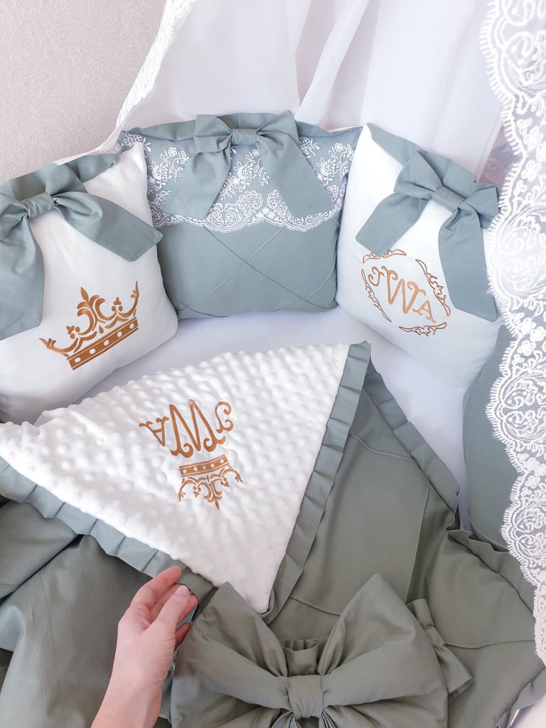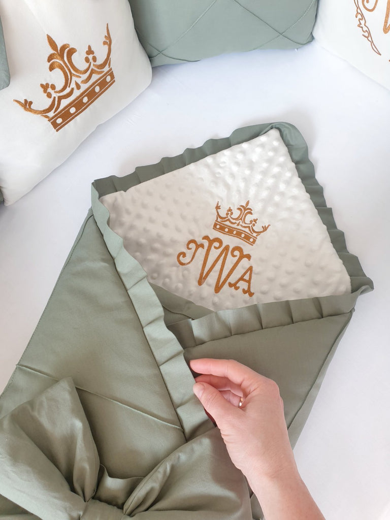 Luxury Bedding Set for Baby Boys "Royal Olive" with Crib Bumper, Blanket