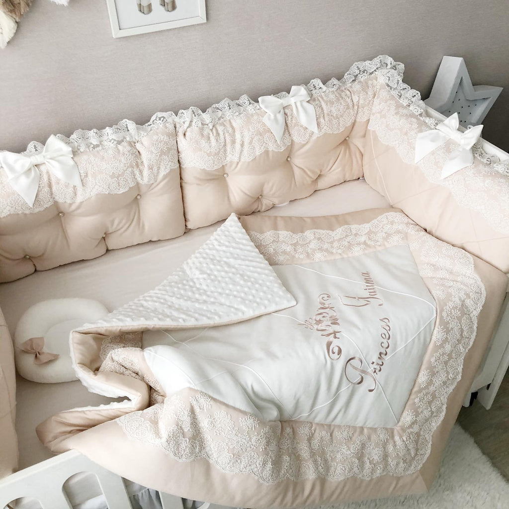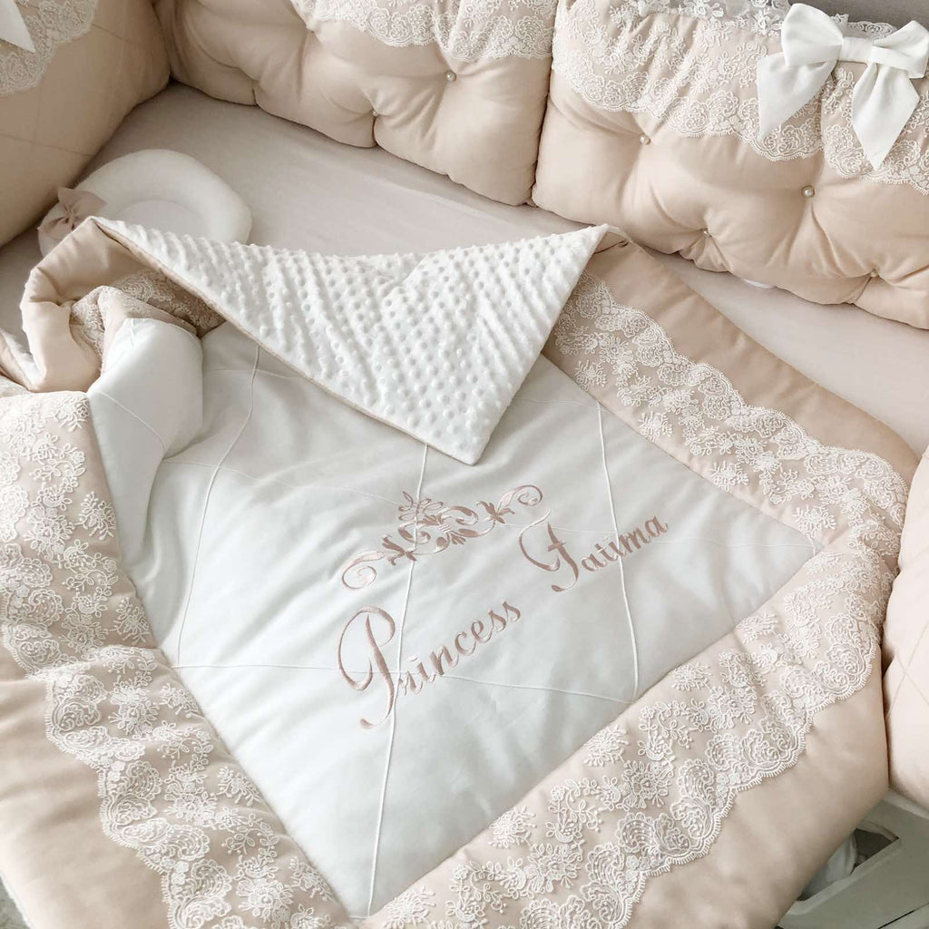 - Baby blanket (43x39 in) with bow and baby pillow + Name embroidery