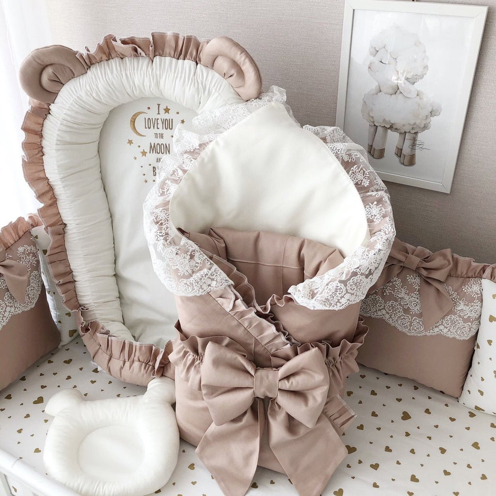- Baby blanket 43x39 in + lace liner for the blanket (with personal embroidery)