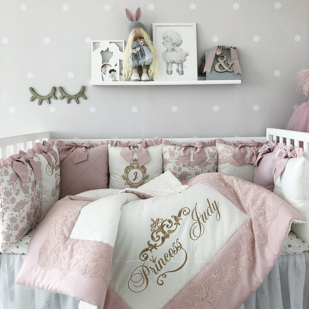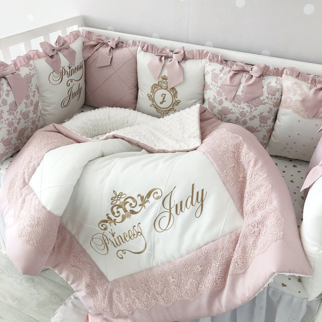 Pink Baby Blanket For Girl Customized "Powder Lace", Luxury Blanket For Baby Girl With Personal Embroidery