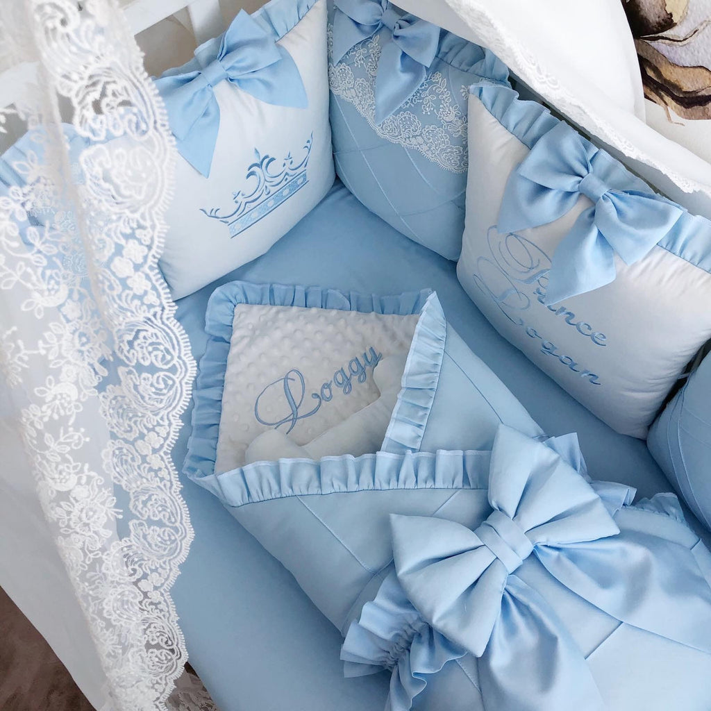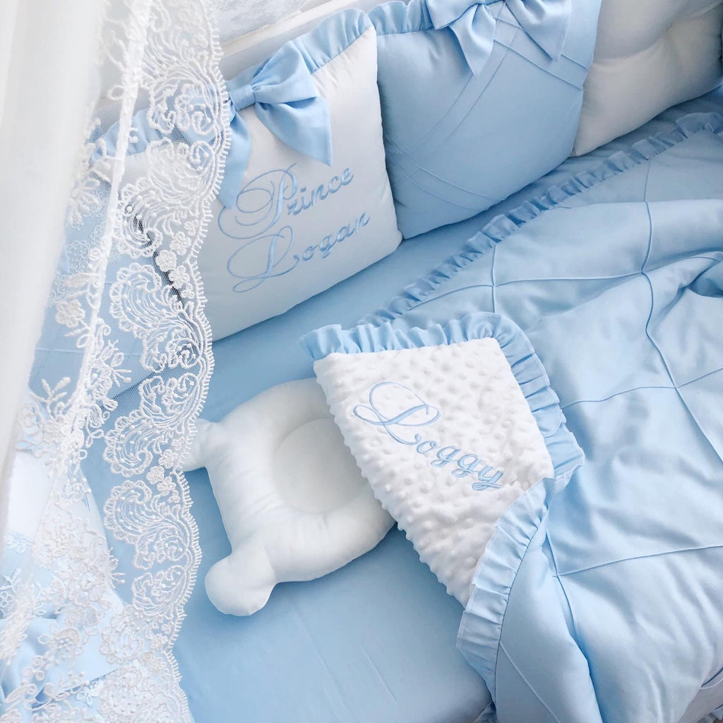 Luxury Bedding Set for Baby Boys "Royal Blue" with Crib Bumper, Blanket