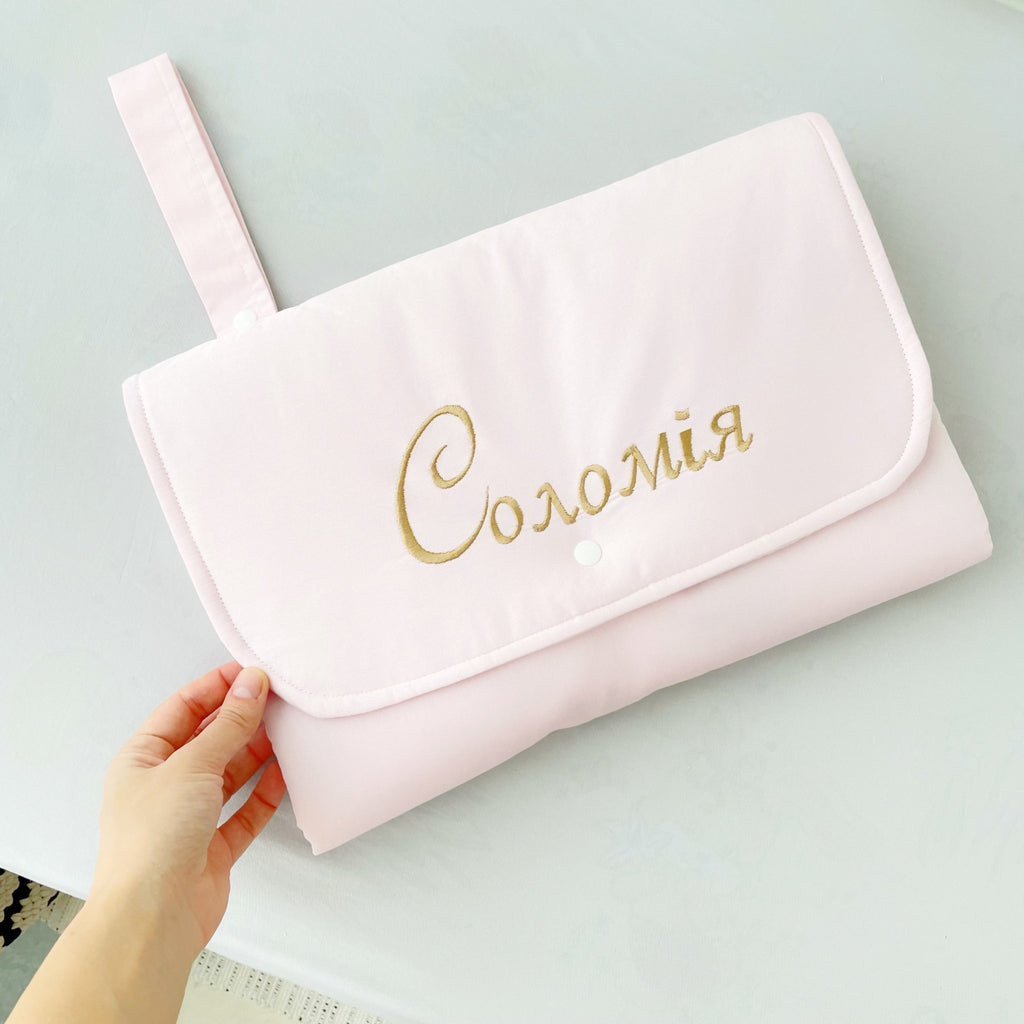 It is made of 100% waterproof fabric (the outer part is made of natural fabric and the inner part is made of waterproof fabric that can be washed). No stress during your travel with a baby, easy to change diapers. This is a great idea for the parents' gift with personalized embroidery.