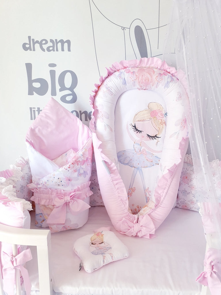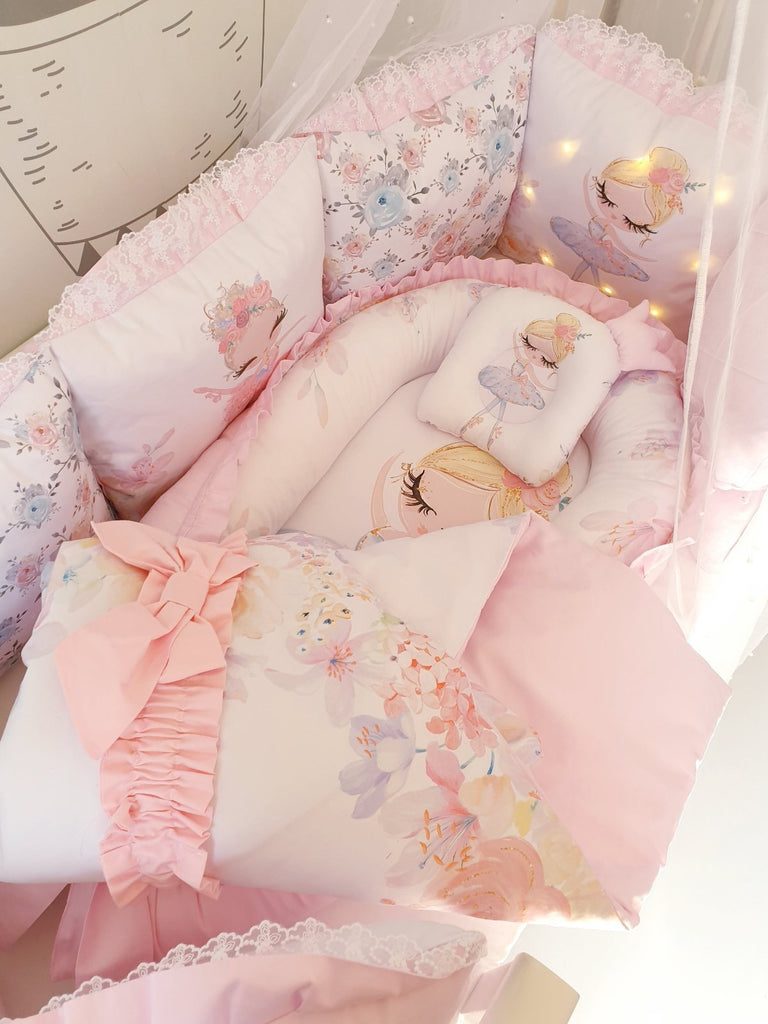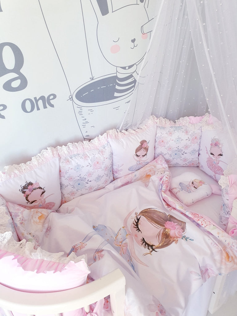 Luxury Baby Crib Bedding Pink "Tender Ballerina", Crib Set for Girls