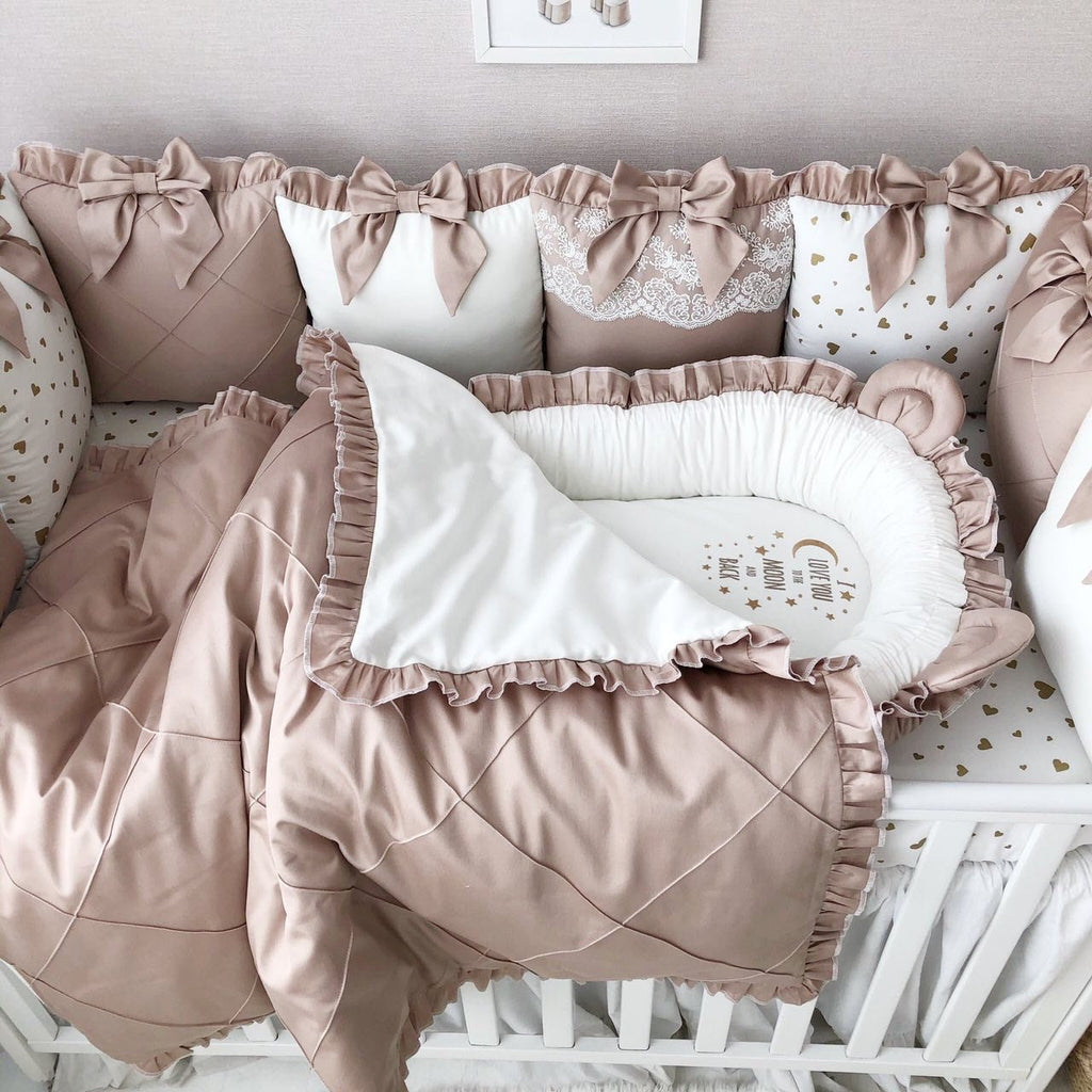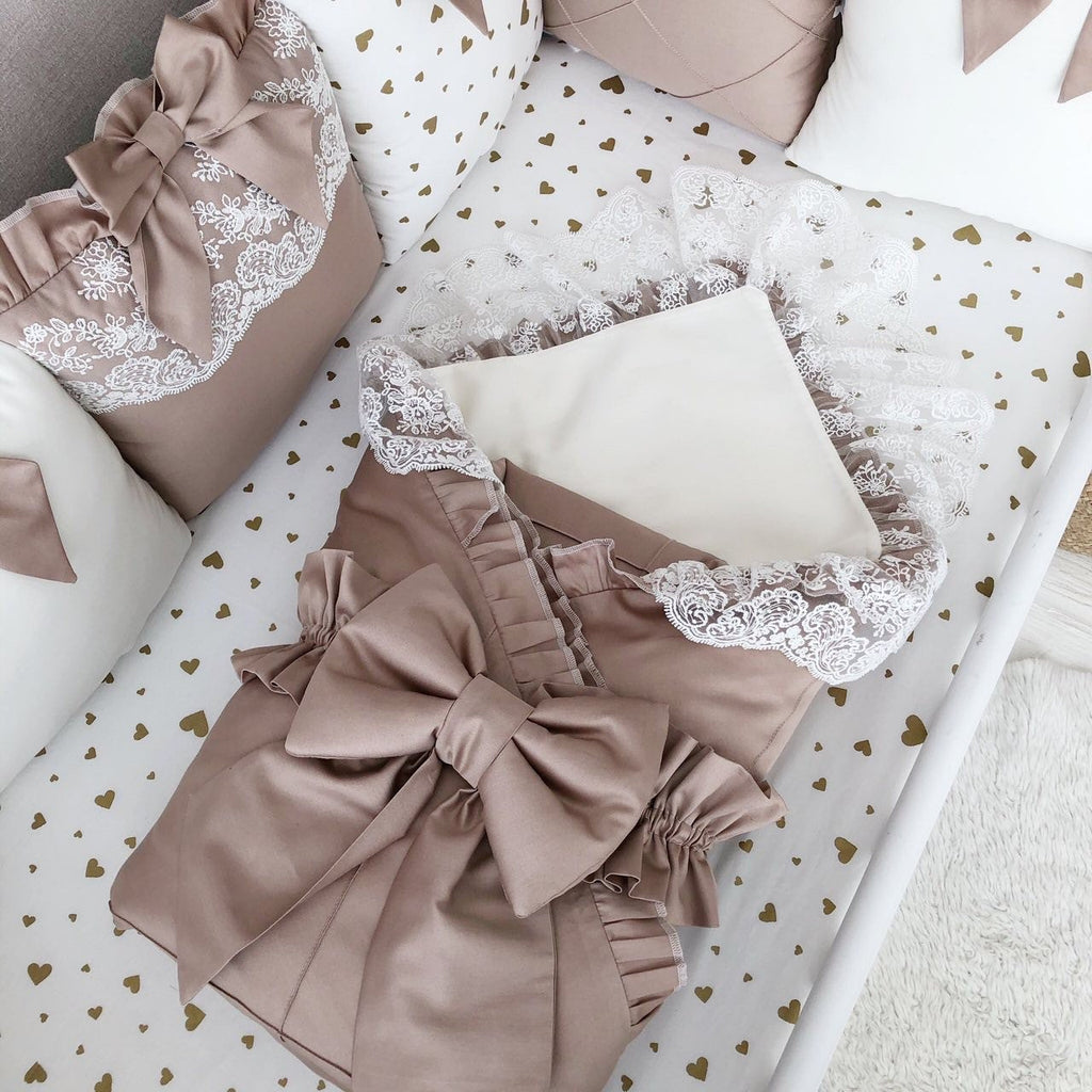 - Baby blanket + baby pillow + bow + personal embroidery + lace liner for the blanket (with personal embroidery) Size: 100x110 cm (39x43")