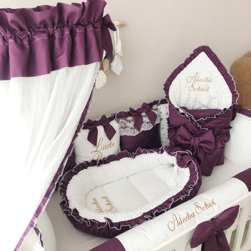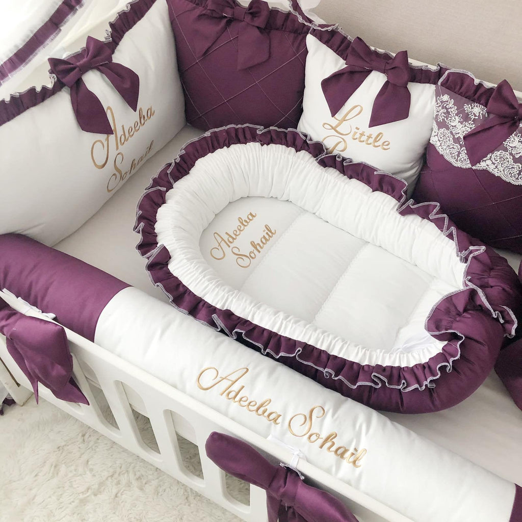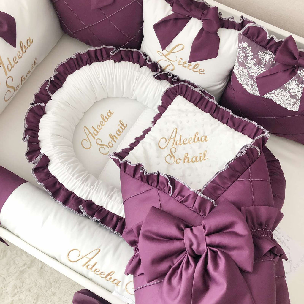 - Baby blanket (43x39 in) with bow and baby pillow + Name embroidery