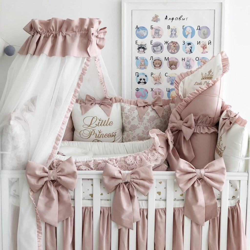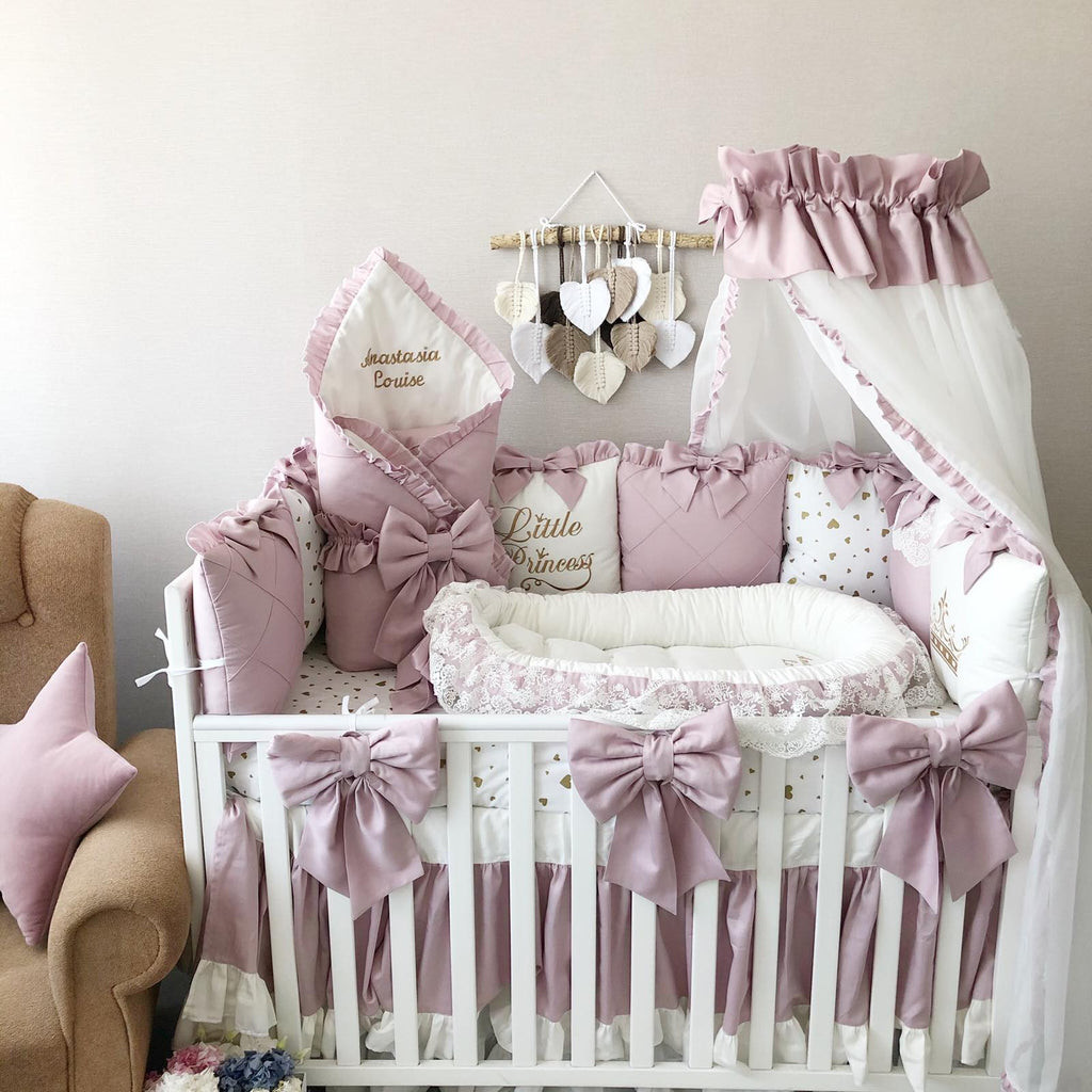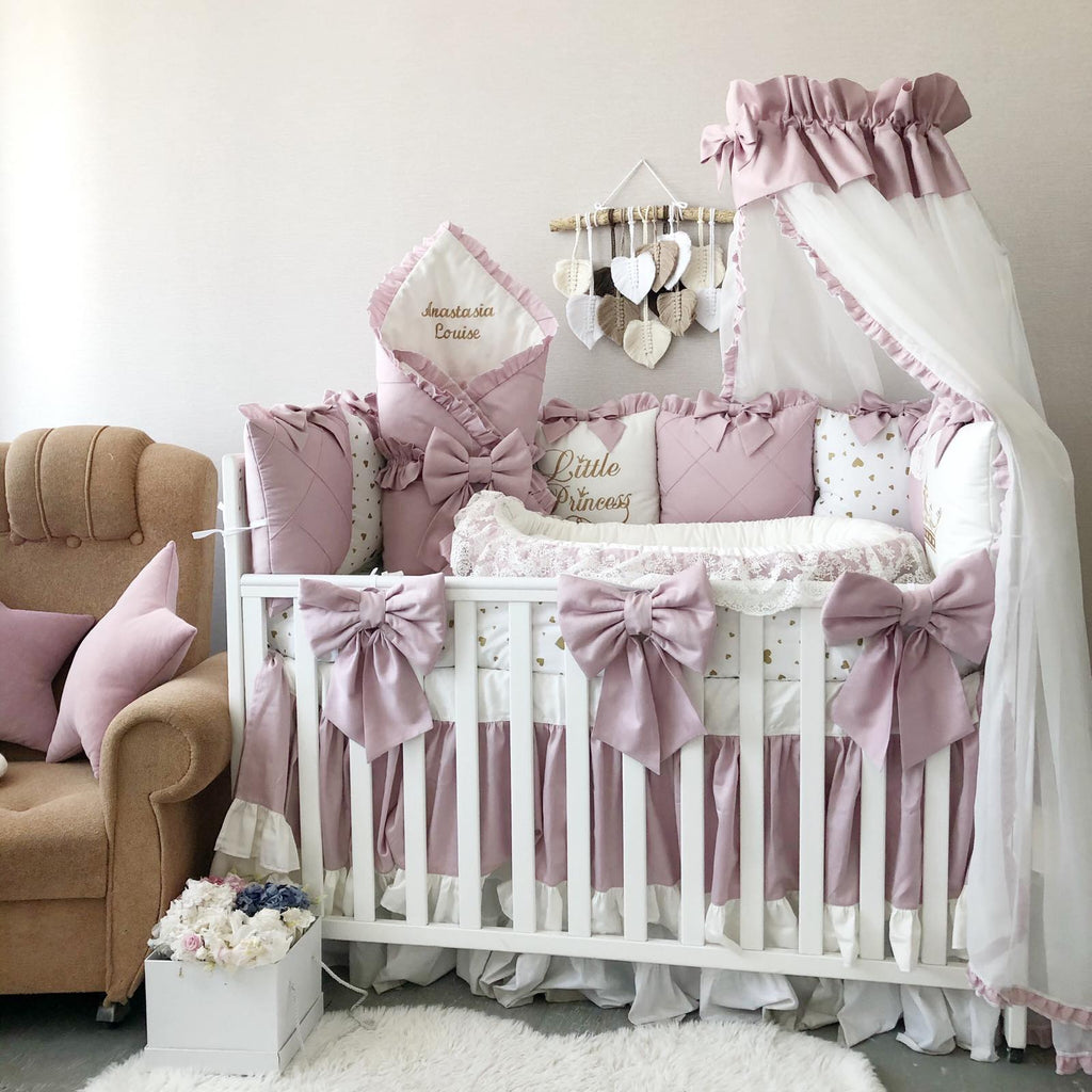 Unique baby bedding set gives a luxury look of your baby nursery. This custom royal crib bedding set with personalized embroidery will be a unique gift for baby shower or newborn baby girls. To produce this designed crib bedding set only premium top quality fabrics applied. You can select this custom baby bedding in different options.