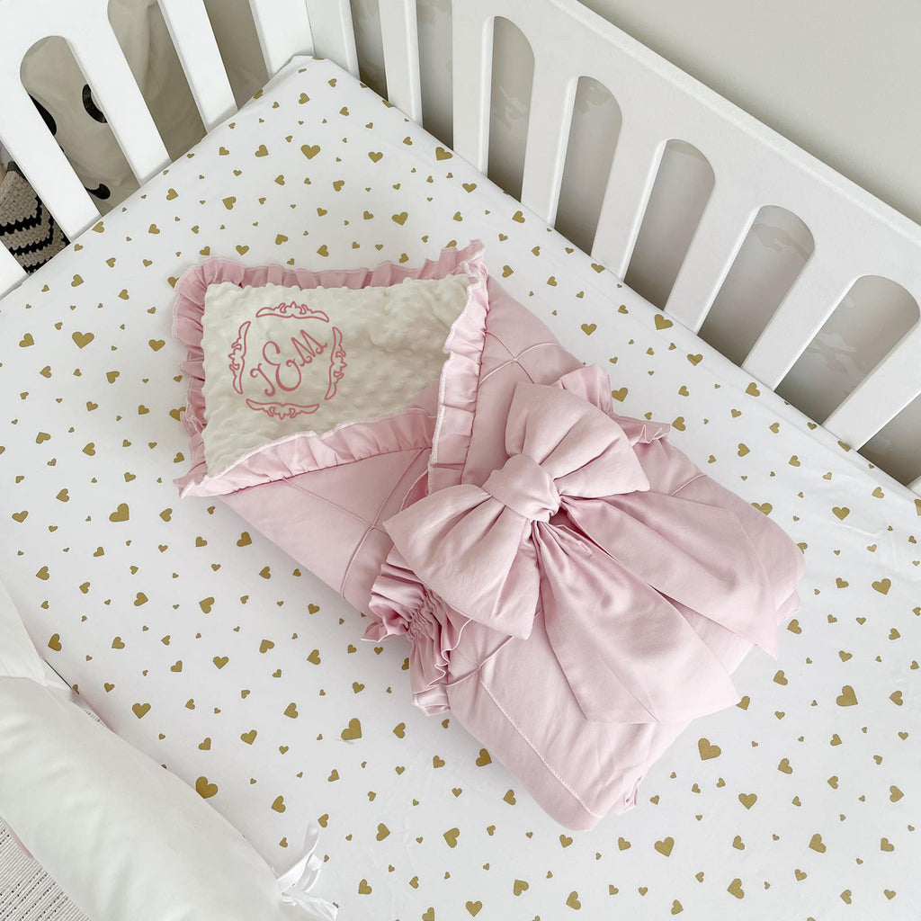 - Baby blanket with bow and baby pillow 43x39 in + Name embroidery