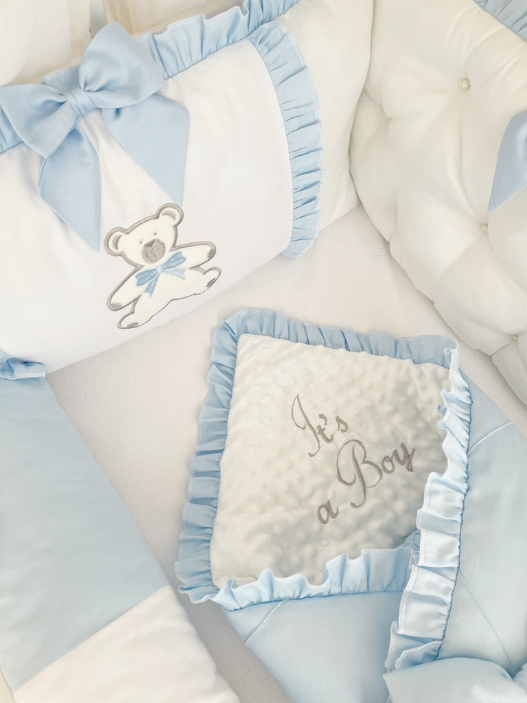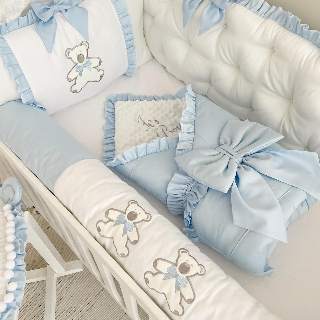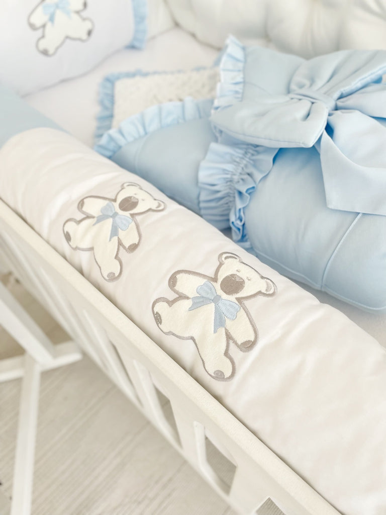Crib Bedding Set for Baby Boy with Bumpers "Cute Little Bear” in Blue