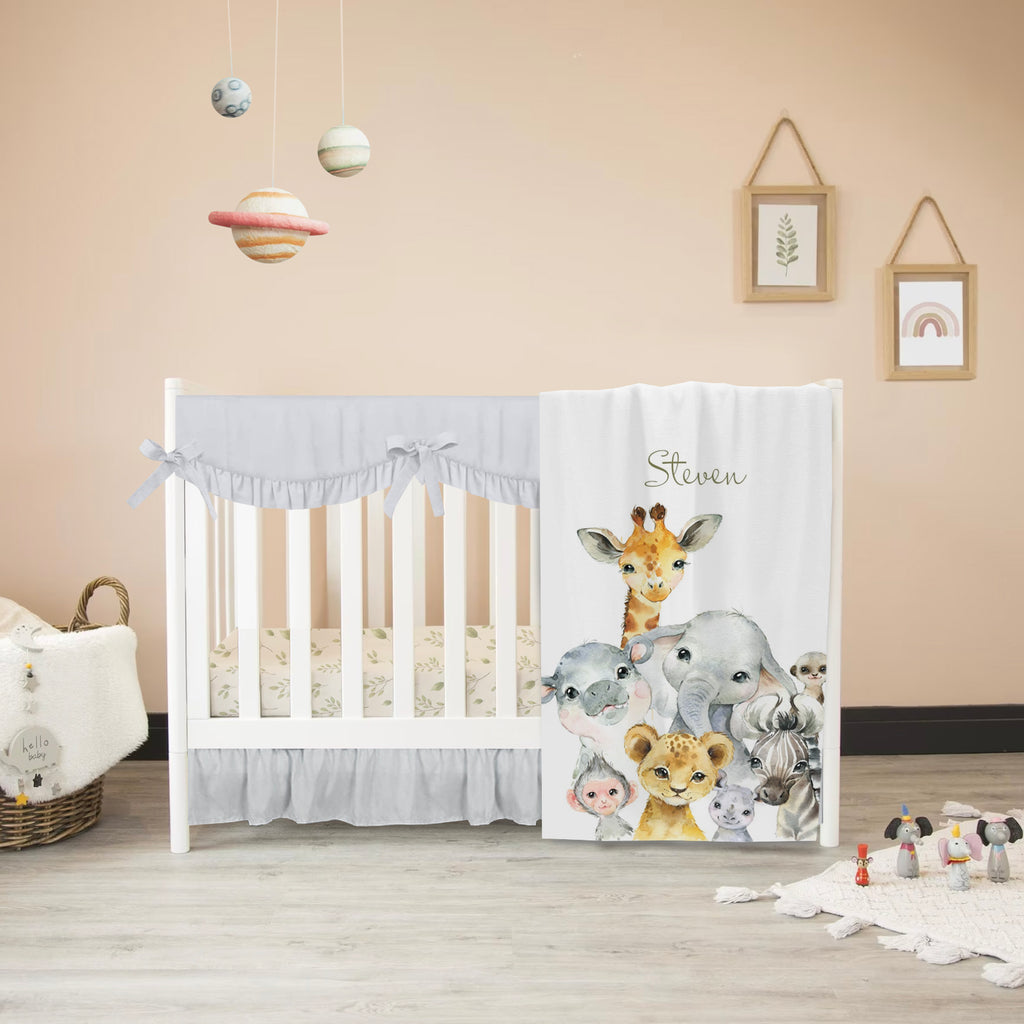 This baby designer nursery bedding will become a great baby shower gift for the baby. Elephant baby bedding fits little prince's nursery and offers different options.