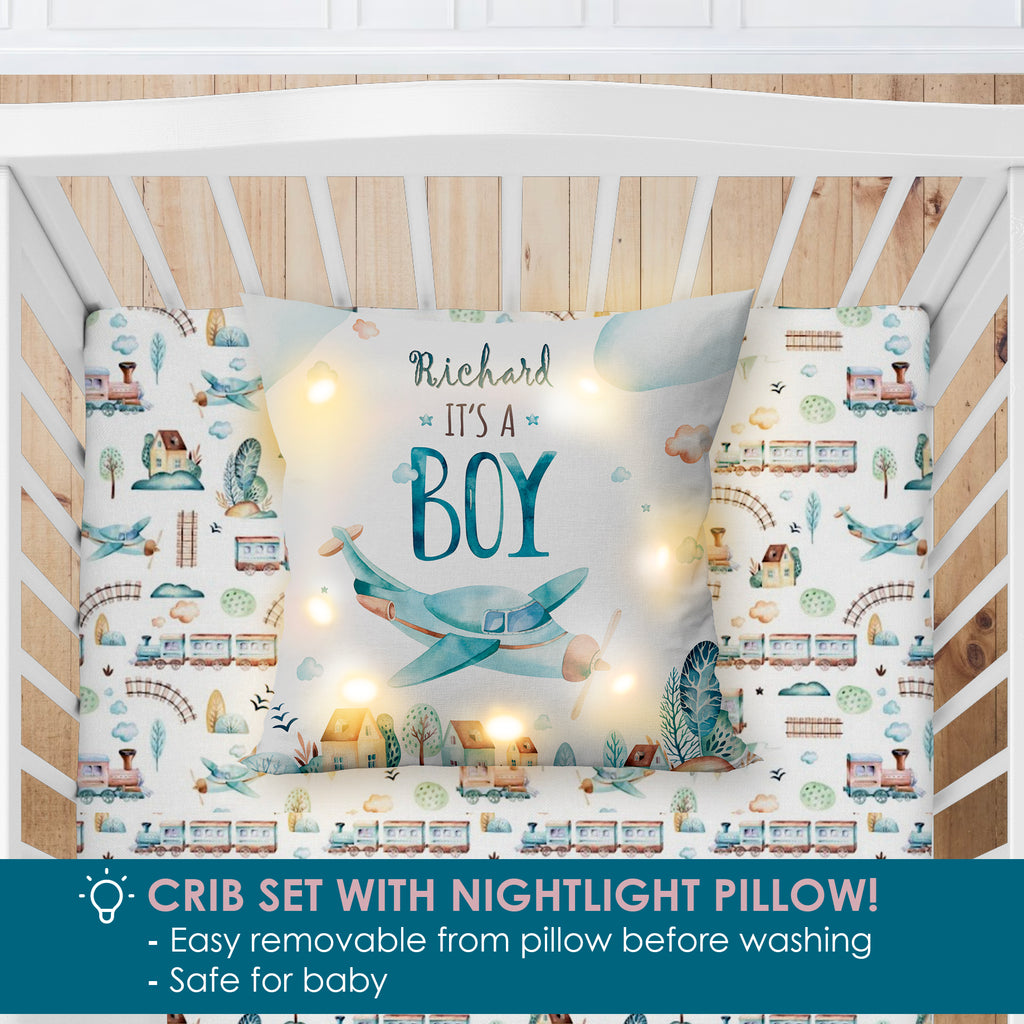 Crib set with nightlight bumper pillow (You can easily take it off before washing)