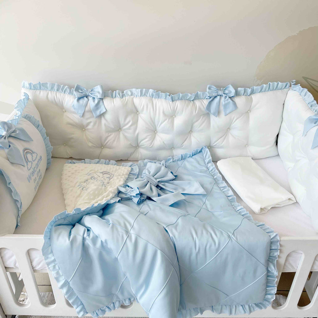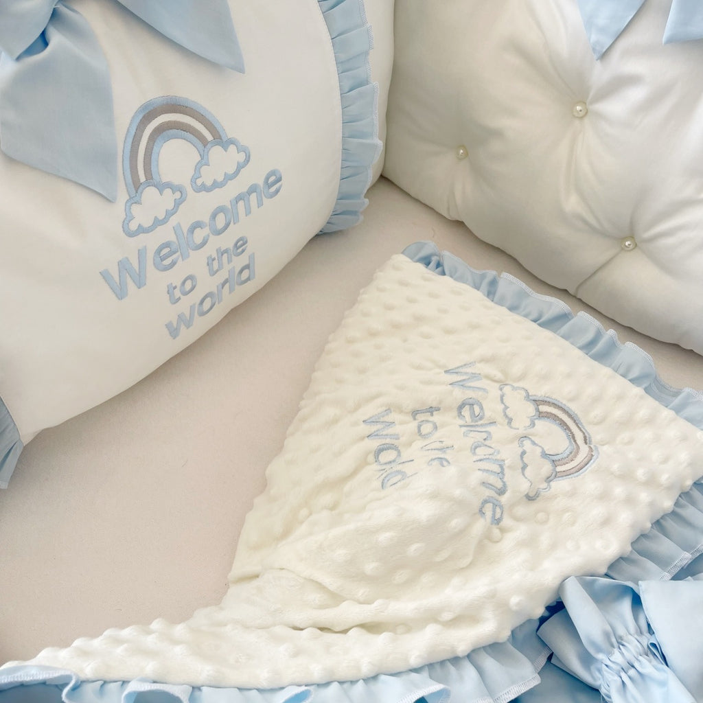 Crib Bedding Set for Baby Boy with Bumpers "Sky Blue Rainbow"