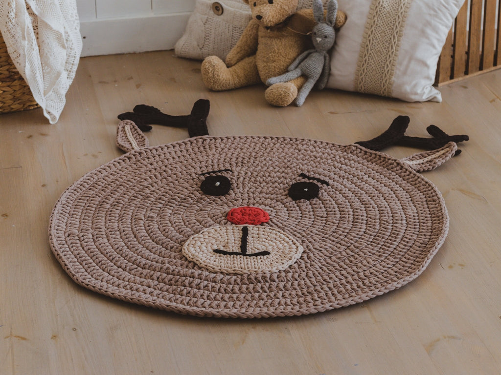 Cotton area rug for kids room or living room becomes a bright piece of your Christmas decoration setup and be a good friend to your kid.